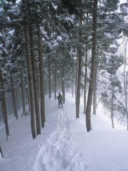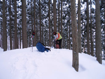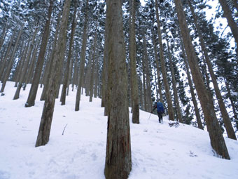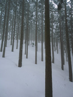 | 杉林を行く。 | 鉄塔で休憩。 |