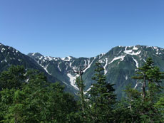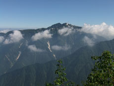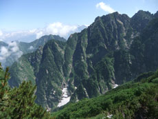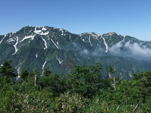 | 毛勝の山々です。 | 右に奥大日岳。その左の室堂乗越から 立山川が流れ込みます。 |
