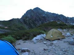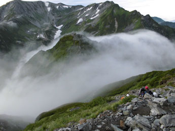 | 今日一日の晴れ間を願いました。 | 黒い雲の間から鹿島槍ヶ岳が望めました。 |