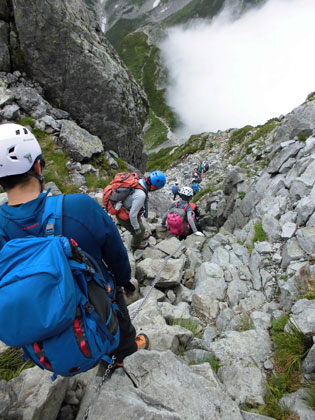 | 最初の鎖場。 | 剱岳山頂は、まだ見えません。 |
