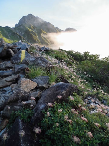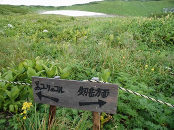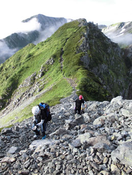 | 早月尾根との分岐。 今回は、「北ちゃん」の軌跡取りが目的の一つでした。 |