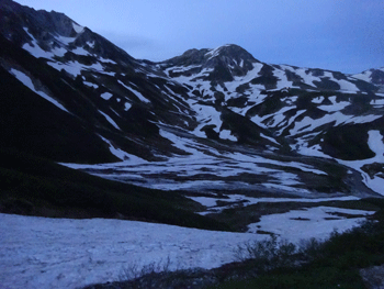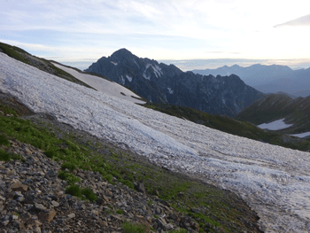 午前3時過ぎになって、今日も私と行動を共にすると言っていた斉木氏を起こした。ご来光が届かぬ午前3時50分くらいのスタートとなったが、ヘッデンを点けながら、段々と明るくなっていく光景は、非日常のものだけに、涼しさも手伝って心地の良いものであった。別山、もしくは立山三山縦走が目的であったのに、別山乗越(剱御前小屋)に来たら心が揺れ動いた。
