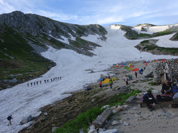 それにしても、室堂までは辛かった。そんな時に、昨日、奥大日岳山頂でお会いした方が、三山を縦走して、テン場に戻るのに私に遭遇したようであった。「やあ~」 と声を掛けられたのだが、誰だかさっぱり分からないのであるから・・・。でも、私の事を覚えてくれていてくれたのだと思えば頗るハッピーであった。