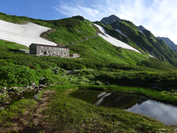 別山乗越(剱御前小屋)に着く。 |