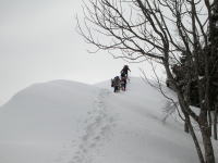 取付きは、かなり急登だと覚悟を決めていたが、時折、ズブーっと雪に嵌る事の方が身体には堪え、20分もしないうちに、先頭を代わってもらった。