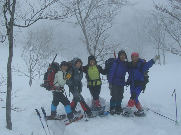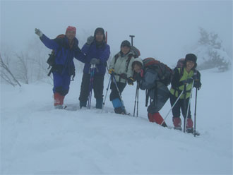 | 食事の終わった山頂で記念撮影。 | 変わったポーズというところで・・ |