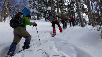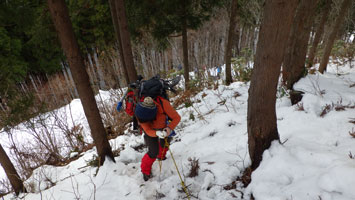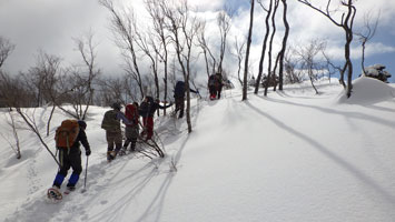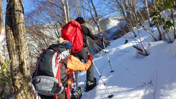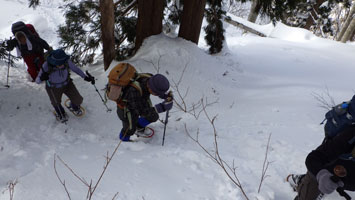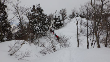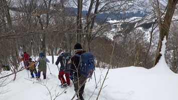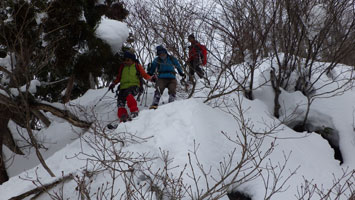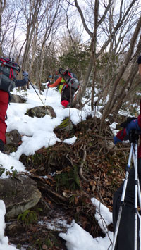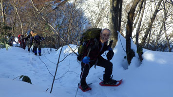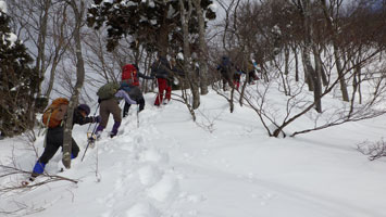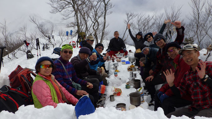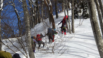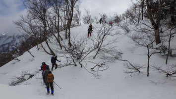 | 名残惜しいが山頂を後にする。 | 少雪で核心部とは感じなかったようです。 |