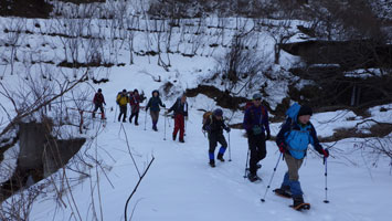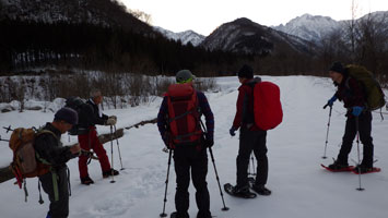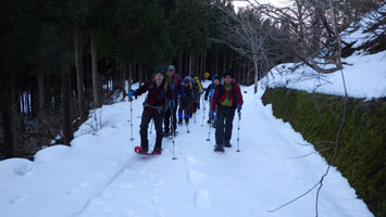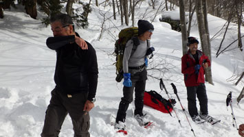 | やはり、下りは楽です。ルンルンだったのでしょうか・・ | 雪量が少なくなったので、スノーシューを外しました。 |
