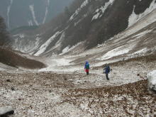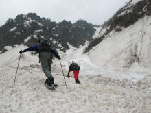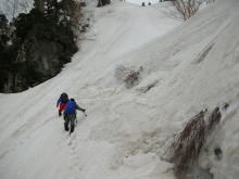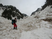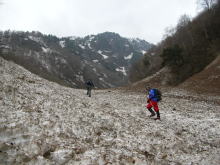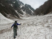 | 登り始めから、 ウド谷は雪で埋まっていた。 |