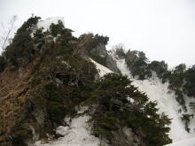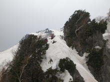 稜線(コル)に近付く | 滝倉方面からの人影を発見! | ウドのコルの雪庇 |