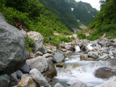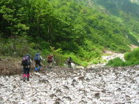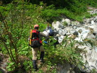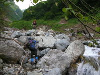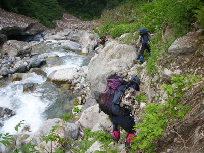 | 大きな石や岩を乗り越えて右岸を行く | 今年は、徒渉が待っていた |