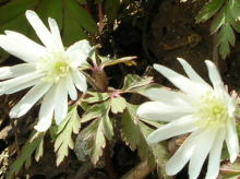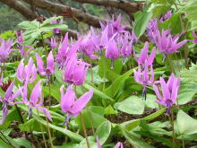 | カタクリの群落 | 遅れて登って来る「山ノ神」 | ウド畑はまだまだ遠い! | 残雪は汚れているが、空は青い |