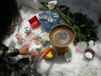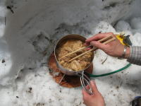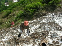 | ウド谷の真ん中で、天ぷら宴会も乙なものだ | 枝木や岩に、しがみつきながらの遡行 |