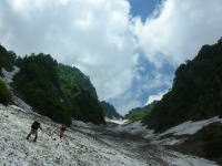 | 唯、ひたすらに、 ガタガタの雪渓を登る |