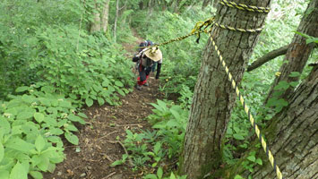 ロープが施してあります。雨の時は、雨の後は滑りやすいです。