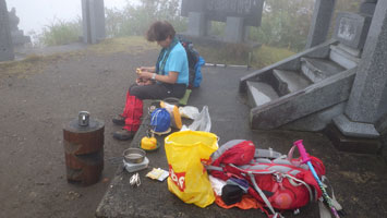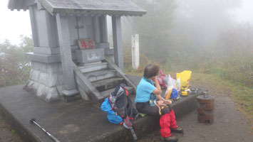 山頂まで40~50分。でも全く展望がない。そして、お腹も空いていない。コーヒを飲んだ後、私だけ三角点を往復したが、それでも物足りない。でも、甥の納棺が行われるし、私には防災訓練がある。少しでも早く戻った方がいいになった。