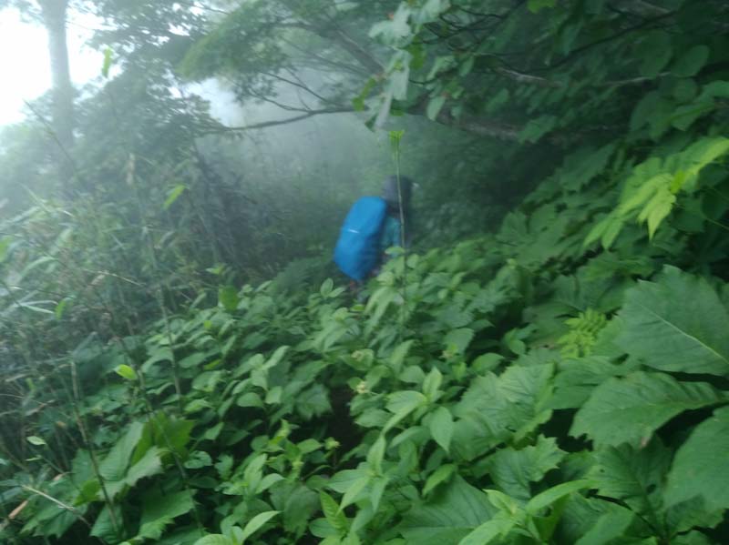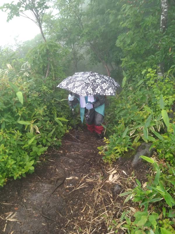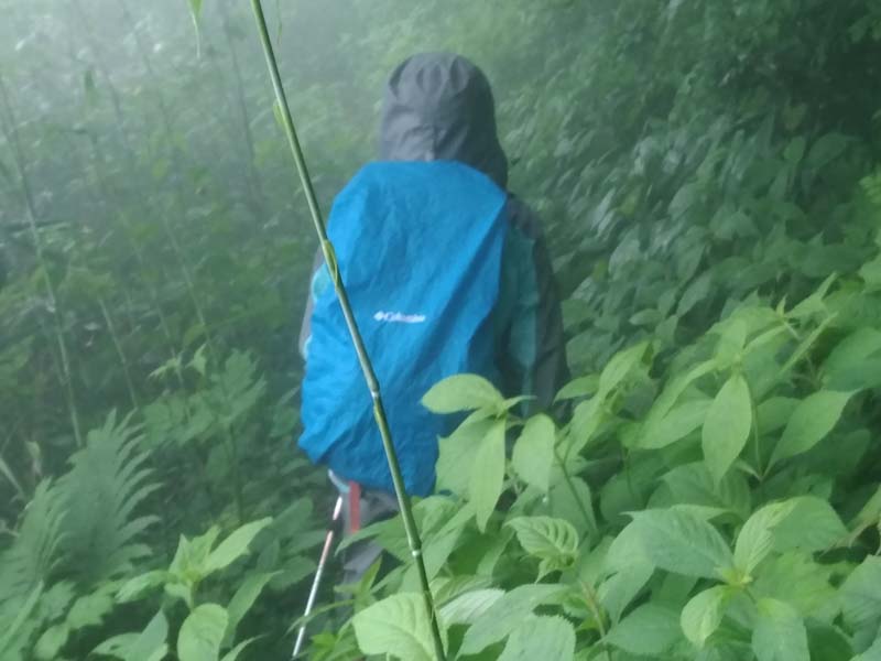 雨の中、9合目から旧道に突入です。