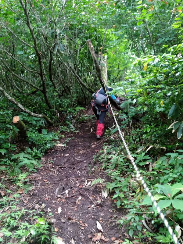 急登箇所にはロープが施してある。 |
