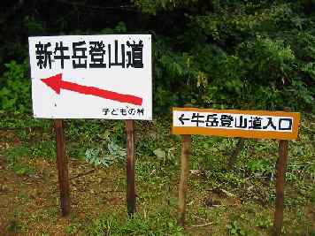 牛岳スキー場のロッジの前を通り、セントラルゲレンデの頂上にある牛岳ハイツを目掛け、ゲレンデの中を、また、バンガロー横を通り、メーンゲレンデであるセントラルゲレンデの上部に出ると、右側に案内板がある。