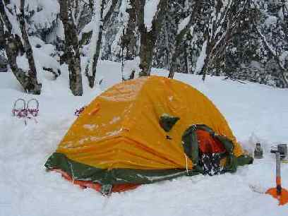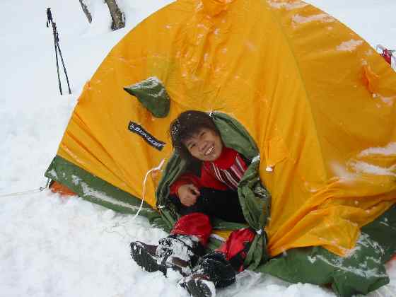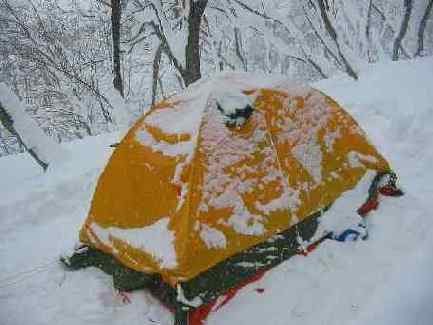 そして、銀マットを一枚敷いただけだが、雪が降り出して、テントの中で食事をしていると、こんなにも暖かいものなのかと思ってしまう。長い夜を寝て過ごすとなると、そうでもないのであるが、ほんの少しなら、ままごと遊びの延長であるから、それは楽しいものである。山は、「冒険」と「ままごと」を、やっているようなものではないかと思うのは偏見なのだろうか・・・・・