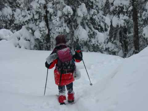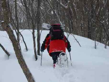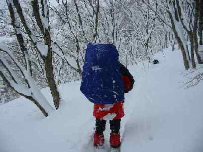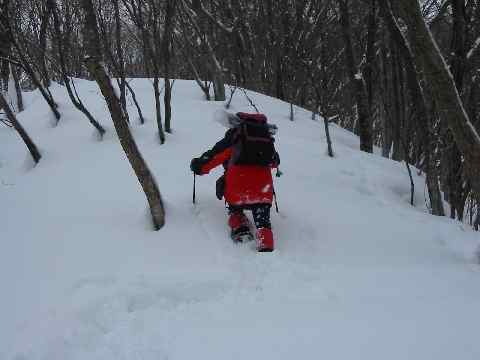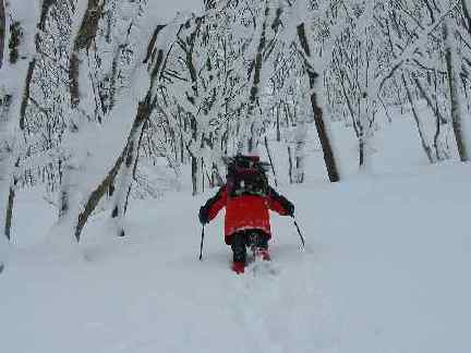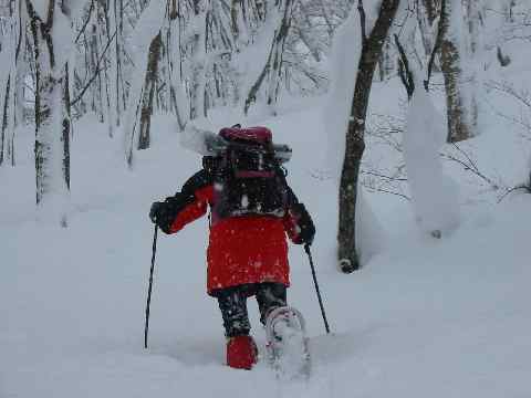 前回の1月2日に来た時よりは、雪の量は多かったが、降雪直後でないだけに、カンジキの沈み方は少なかったように思えた。