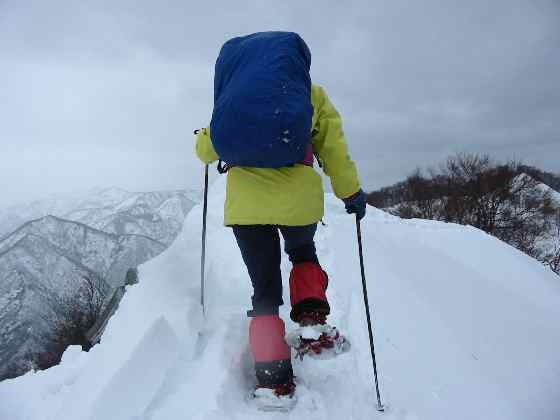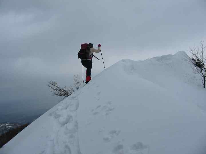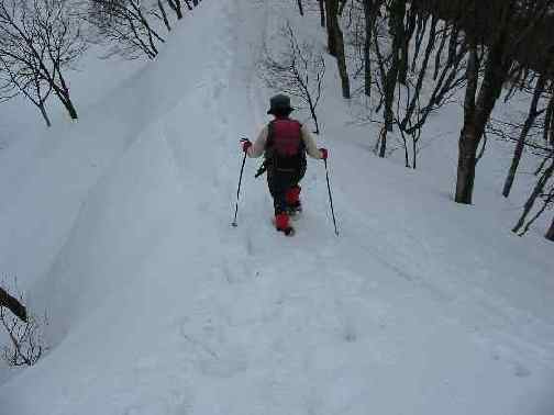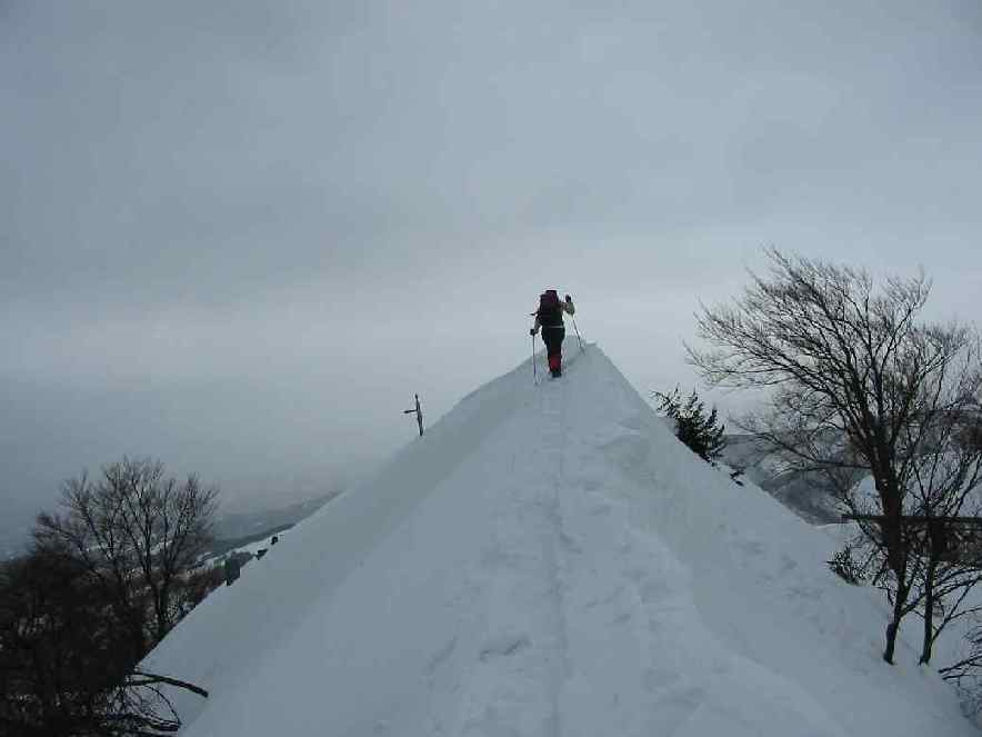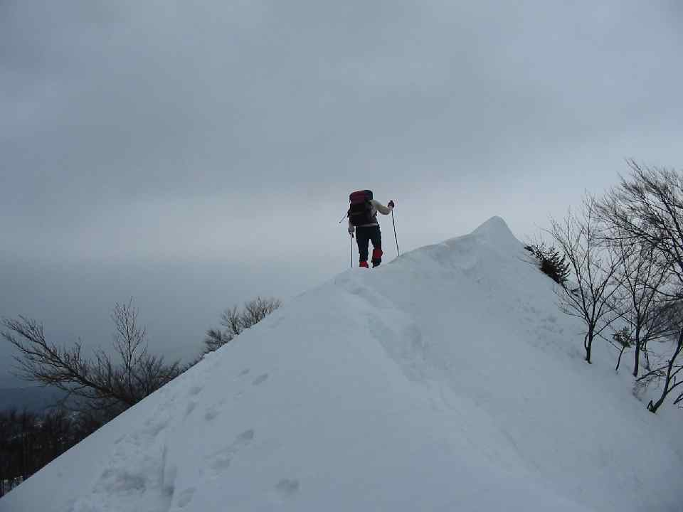 1~2月に、純白の雪を壮絶なまでのラッセルが良いか、少し汚れた雪になるが、締まった雪の上を歩く3月が良いか意見の分かれるところであるが、大雑把に言えば、どちらも良いのである。稜線とその斜面は、未だ雪が多く、お天気が良ければ、ルンルン気分間違いなしである。