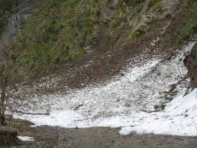 雨覚悟で「牛岳」となる。「負釣山」も「金剛堂山」も雨では仕方がない。「山ノ神」は歩きたい。私は1月から毎月の4回目となる。スノーシェードから見て林道が開いていると思って入ったが、150㍍も行くとデブリであえなくストップ。