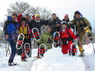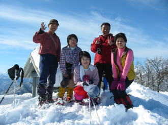 | 9名全員が牛岳山行に感謝のポーズ | 牛岳頂上で(第一次アタック隊) |