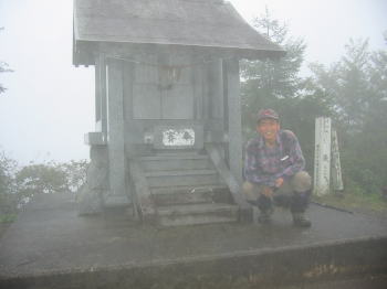 欲深い私は、とっさに右腰に手をやったがカメラがない。山頂を発つ時、早く帰らなければならないし、この霧雨では、撮る所もないであろうと、リックの中にカメラを仕舞い込んでいたのである。流石に、そこでリックを降ろしてカメラを出す勇気はなく、後ずさりして、陰になる所で始めてリックを降ろし、カメラとホイッスルを出した。ホイッスルを吹きまくった。