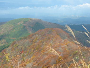 今秋は、相次ぐ台風の襲来で、例年のような登山道整備が出来なかったのであろうが、今夏の時に比べれば、随分歩き易かった。「山ノ神」に9/27のクマとの遭遇場所を教えたり、その対処法を話したりしながら、山頂に向かった。 時々陽が差し、また視界も広がり、鉢伏山方面の紅葉は目を楽しませてくれた。40分ほどの山頂滞在に「うどん」を作り寛いだ。87回目の牛岳登頂である。