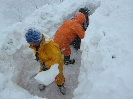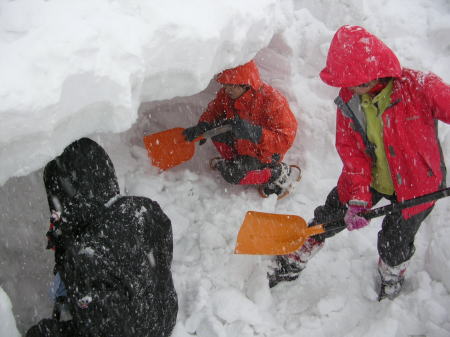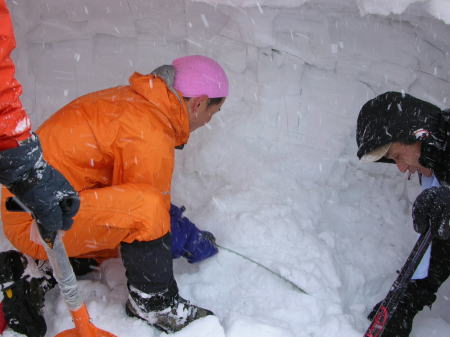 横穴に進むころは、窮屈な姿勢も手伝い、その硬い雪に悩まされたが、ヒロシ君(橋本君)の出番となった。包丁のように切れるスノーソーを、上手く使って、シャベルの活用を容易にしてくれたのである。