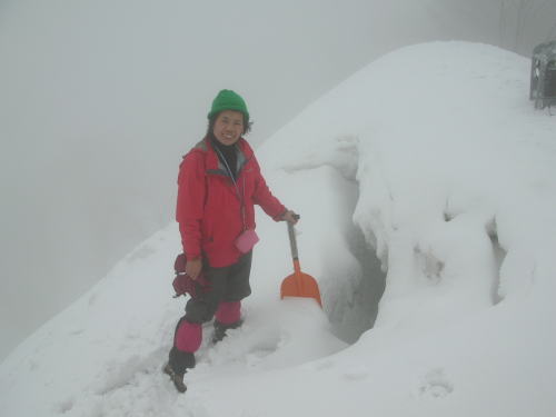 いろいろな使われ方をされたらしい雪洞の中を、きれいに清掃してから、昼食を取ったのであるが、何故か故郷の帰った心境であった。