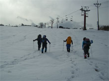 牛岳スキー場(10:10~20)=セントラルゲレンデ上11:20=林道東屋11:40=二本杉12:00=鍋谷ブナ林12:30=牛岳頂上(12:50~13:00)~~食事~~スキー場駐車場14:50
