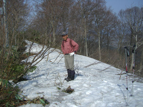 | 連なる残雪に直接三角点を目指す。 |