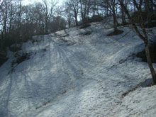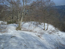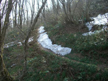 上部の登山道は雪に覆われていた。 |