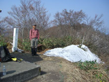 | 山頂をバックに三角点で・・ |