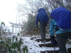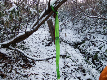 | p.m.0:31 風が強く山頂では食事が出来ず 二本杉に向けて降る事になる。 |