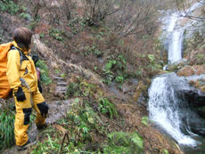 p.m.2:23 余裕のマキちゃん。三段の滝を眺めて 感傷に耽っていた? |