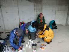 | この日の牛岳スキー場集合は、 午前10時であったが、40分ほど前 から待機し、コーヒーを沸かしていた。 |