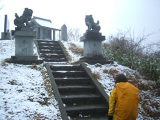 a.m.11:37 うっすらと雪が積もった牛岳山頂。昼食に するには、時間が早いし、歩き足らない。 |