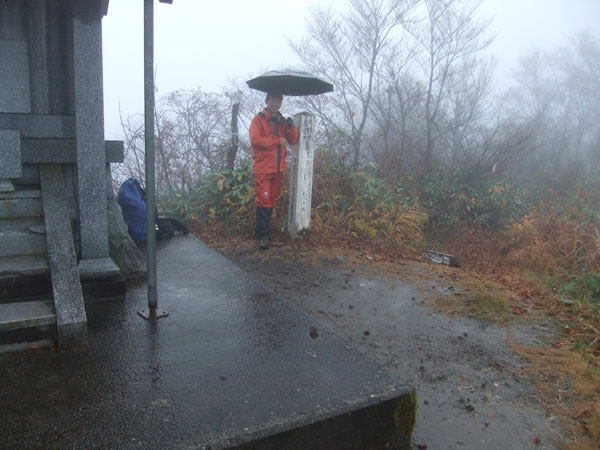 山頂では、雨の中、三脚を立てて、一枚だけ写真を撮った。特別の意味が無いが、行ったか行かなかったの証拠だけ、いやいや、長い山歴の記録写真である。下山してから、夕方まで、自分として考えられない時間を過ごした。一年に何回か、こんな時があってもいいのかもしれない。
