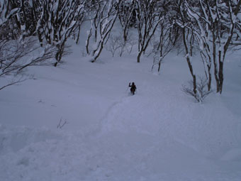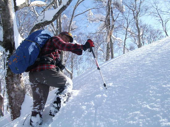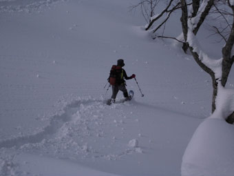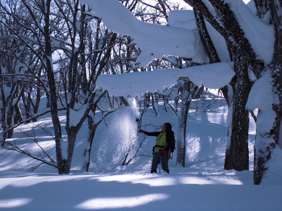 お天気の関係上、始めから、「午前中が勝負」との思いで出掛けたから、三角点止まりのつもりであった。牛岳権現様のある頂上までは、見掛けは距離がありそうであるが、時間にすれば10分ほどで行ってしまう。トレースが無くても、倍の時間を掛ければ問題ないのであるが、この一番高い所で、シェルターを造るのが楽しみの一つでもあったからである。