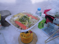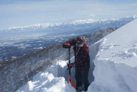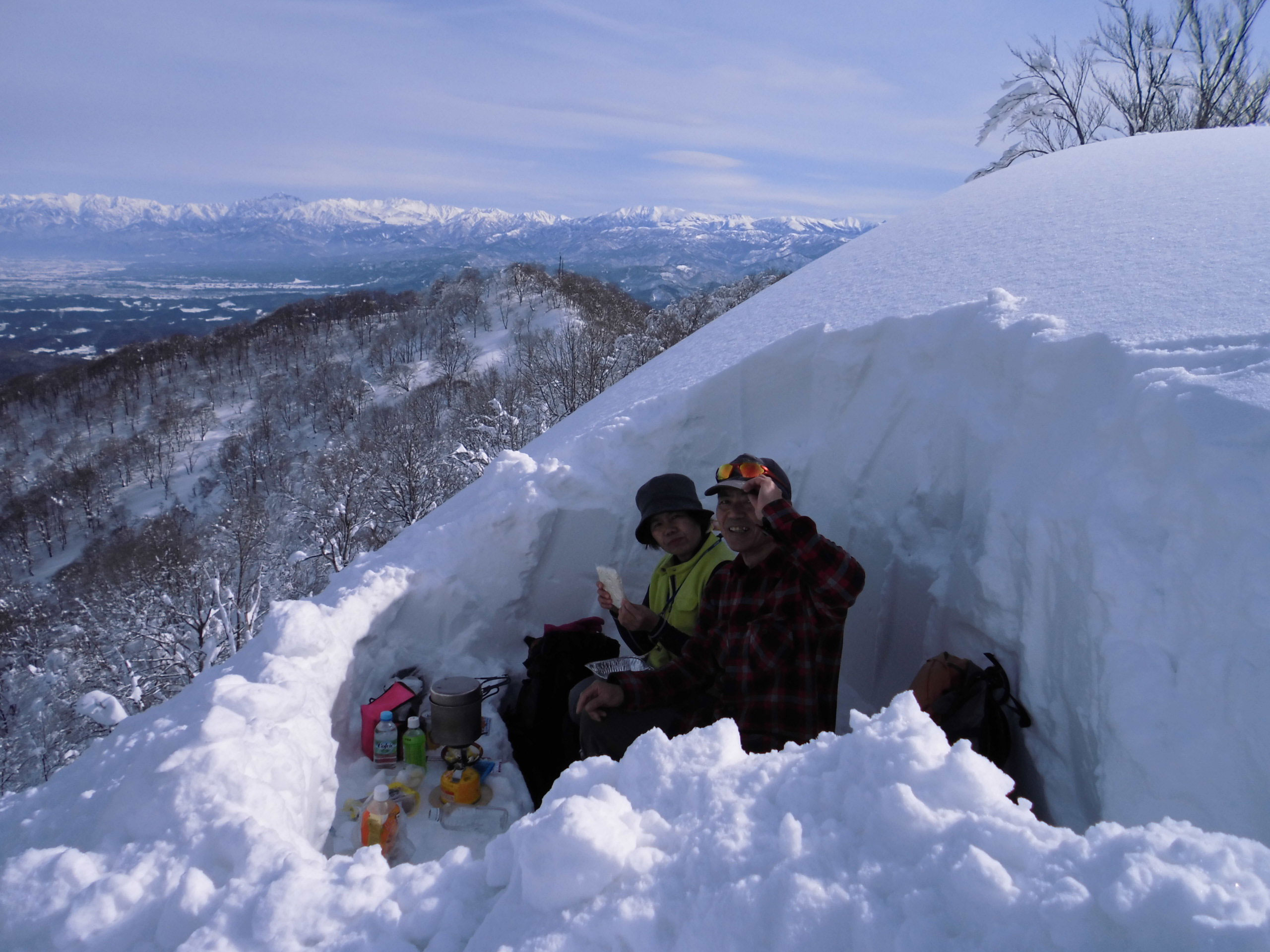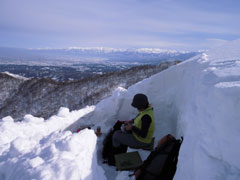 しかし、お天気の良いのに横穴を掘る事もなかろうし、待っている者の気持も考えなければならないとなり、本来のものと違った物となったが、展望台的シェルターにはそれ程の不満もなかった。今回、後続者一人(小矢部の高橋氏)があった。