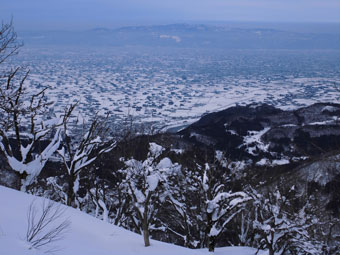 1/22 昨日の牛岳は、三角点までびっしりとトレースがあった。いつものように利賀街道の雪捨て場(庄川沿い)で出発の準備をしたのであるが、気温は-5℃、そして、その場所は風があったので、いたたまれないほど寒かった。