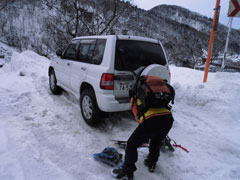 1/20 牛岳登山口に車を止めて、いざ準備をしようとしたら、下の孫の着替えなどが入ったバックがある事に気が付いた。月曜日は、布団や外で遊ぶための着衣なども含むため山用品と、ごっちゃになってしまったようだ。