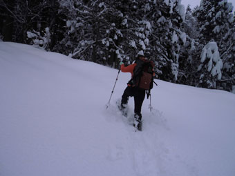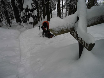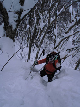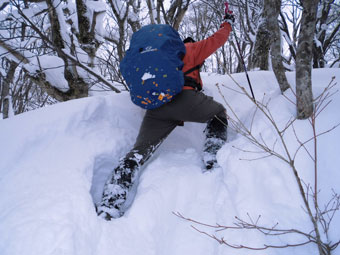 それでも、スキートレースがあり、僅かな沈みの差が、歩く者としては助かった。でも、思いもよらぬルートは、逆にロスとなり、ルート変更に深雪のラッセル強いられるところもあった。