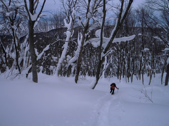 「最高点に届かなくても、まあ~いいか。」 と一気に降る。このところの山行回数で気を強くしたのか、「山ノ神」は、今まで足が竦むと言っていた斜面を、一気に駈け降りて行った。やはり慣れなのか・・・・
