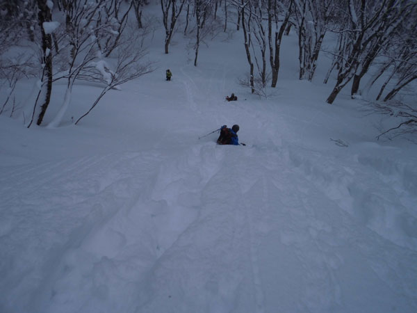 本日のメーンイベント。急斜面を駈け降りるのであるが、皆転んでしまった。