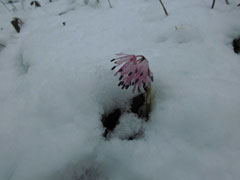 雪に埋もれた花たち。ツバキ・ショウジョバカマ・イワウチワ
