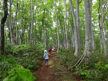 ブナ林の所では、河合さんに待っててもらいました。 |